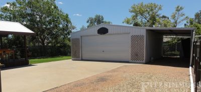 - 10m x 7.5m Zincalume shed with single carport attached.