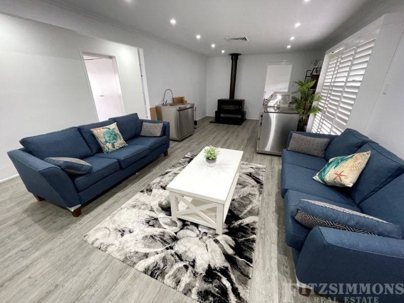 The kitchen will delight and inspire with electric appliances and island bench opening onto the spacious dining area. Take in the lush hedges surrounding your back yard while cooking up a sumptuous feast for the family. When the weather cools, you can retreat to the lounge & be mesmerized by the huge fan assisted wood heater while taking in the street scape of Sydney Street.
